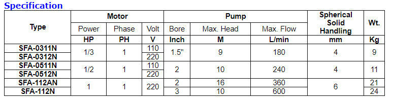 - Semi-open impeller designed for the general dewatering pumping use