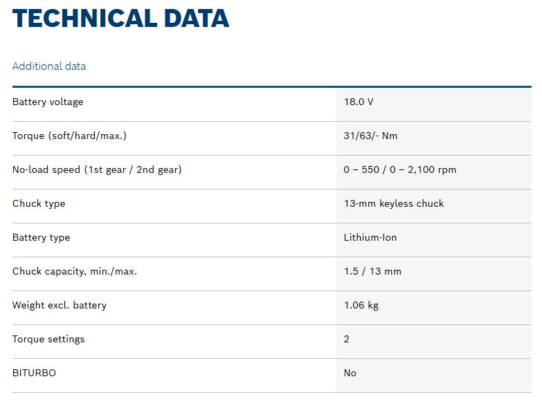 - Performs tough drilling applications with ease thanks to improved 63 Nm torque